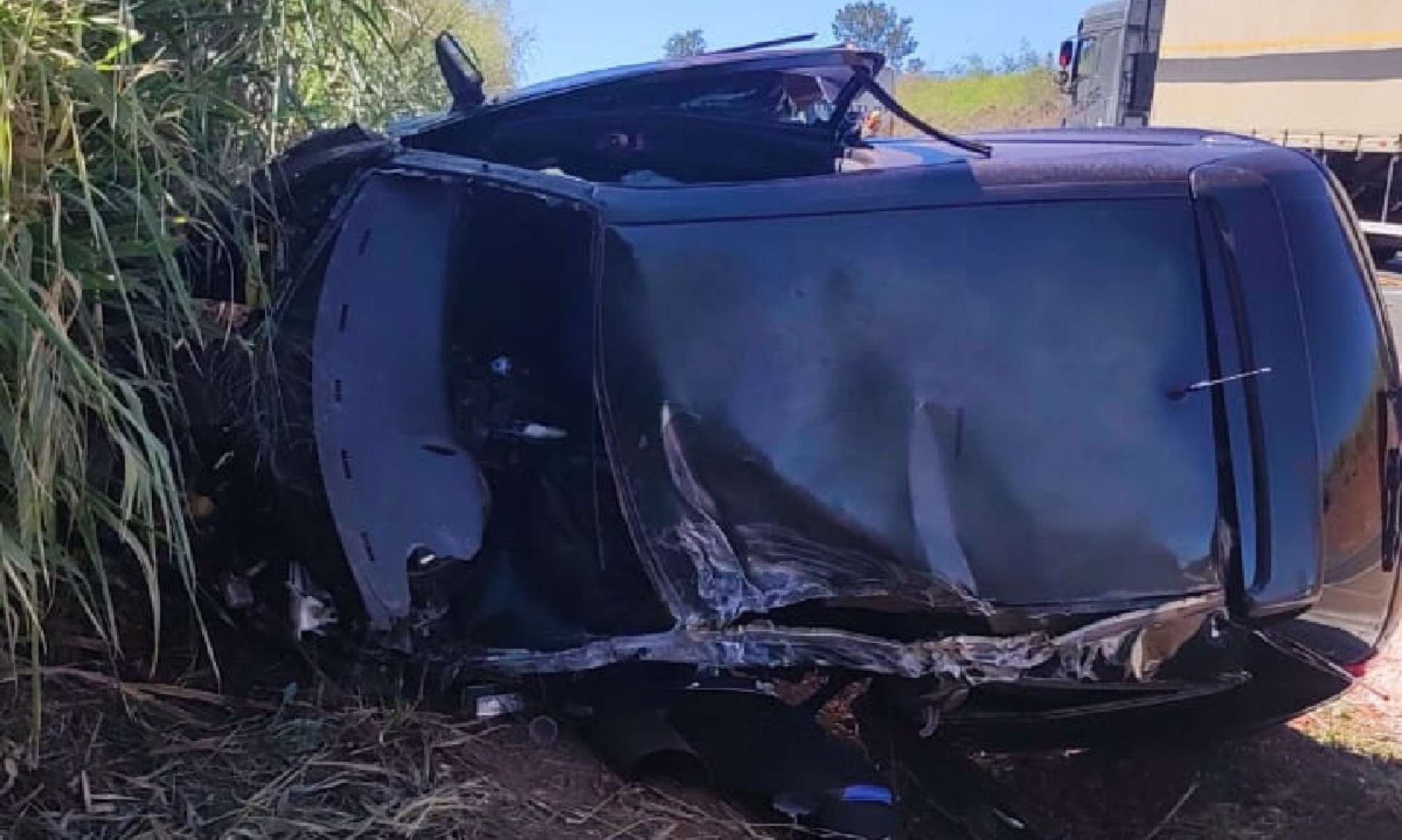Um carro capotou depois de colidir com um caminhão na BR-365, altura do Km 40, na altura de Patos de Minas, no Triângulo Mineiro, na manhã deste sábado (28/06). Uma pessoa morreu e outra ficou ferida.