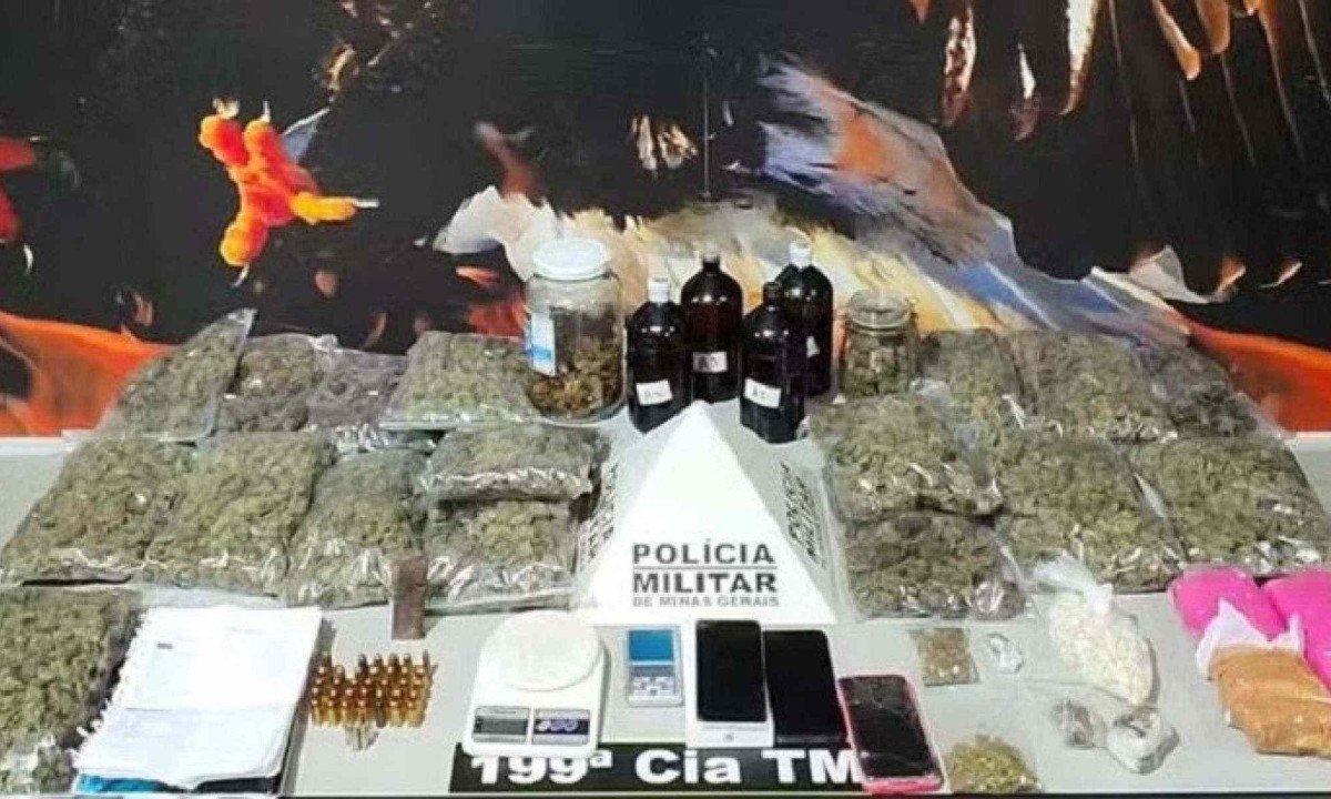 Na casa em que o suspeito foi preso havia R$ 60 mil em ecstasy (MDMA) e pacotes de flor de maconha avaliados em R$ 105 mil. Munições e balanças também foram apreendidas.
