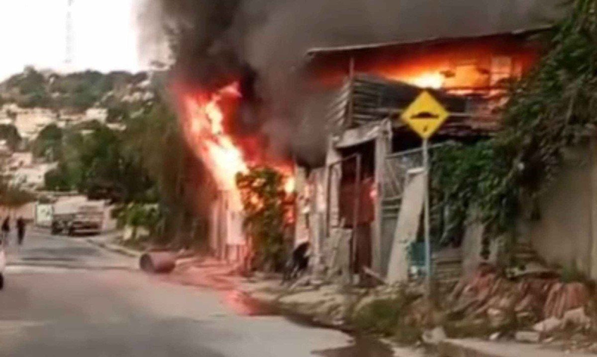 Fogo atinge casa de três andares com produtos inflamáveis no bairro Florença, em Ribeirão das Neves, na Grande BH