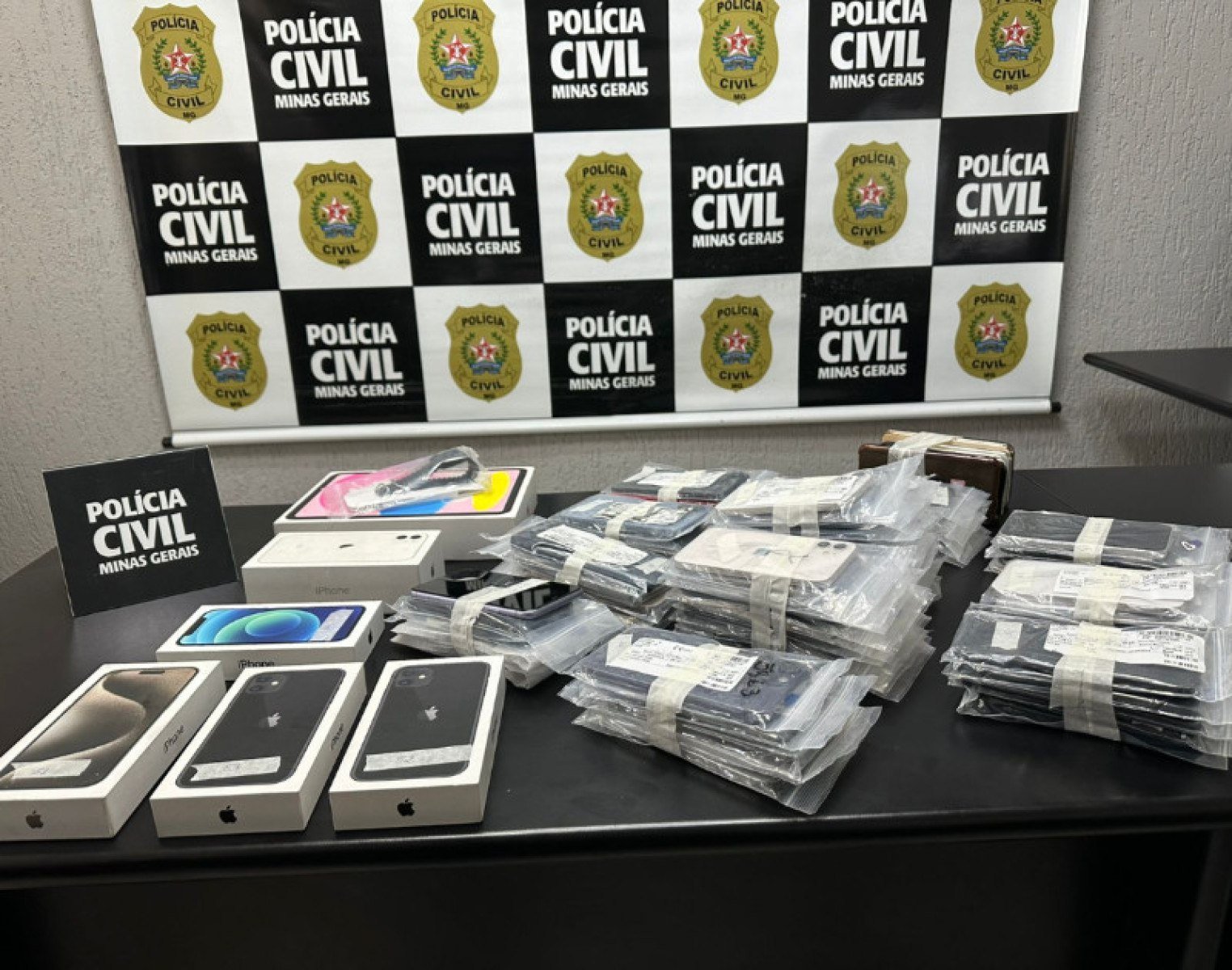 Durante a ação, a Polícia Civil de Minas Gerais apreendeu 80 celulares, um tablet lacrado e um relógio. Todos os materiais estavam sem documentação de procedência.