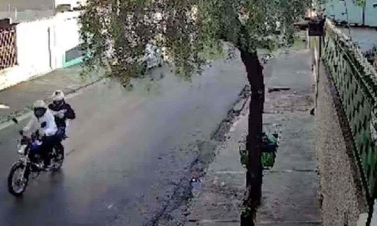 Nas imagens, é possível ver o momento em que dois homens, em cima de uma moto, chegam ao local. Eles param em um bar, em frente a uma igreja, ponto muito movimentado no bairro. Ainda na moto, eles conversam com um homem vestido com um moletom branco. Logo depois, ele começa a correr, enquanto diversos disparos atingem a fachada do estabelecimento e os muros próximos.