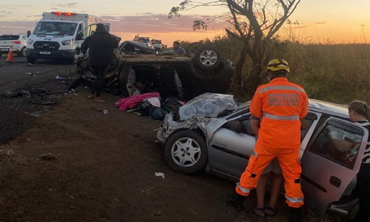 O acidente ocorreu no final da tarde de domingo (27/7). As causas ainda são desconhecidas e estão sendo investigadas. A perícia da Polícia Civil esteve no local. O caminhão tem placa de Atibaia, São Paulo, e os três veículos, de Santa Luzia, Patrocínio e Uberaba.