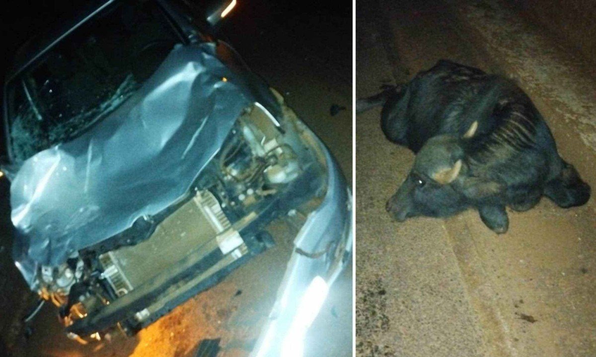 O motorista de um carro envolvido no primeiro acidente contou para a Polícia Militar Rodoviária que seguia no sentido Frutal/Itapagipe quando foi surpreendido por vários búfalos cruzando a pista. Então, ele afirma que freou, mas não conseguiu evitar o choque com um dos animais. O veículo dele teve danos na parte da frente e no teto.