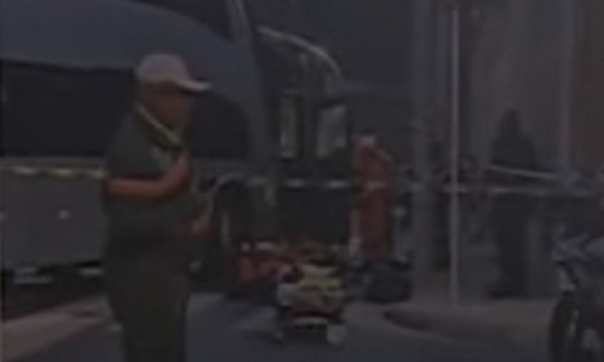 Na solicitação, uma testemunha afirmava que um homem estava inconsciente embaixo de um ônibus. Ele usava um capacete e nenhum sangramento foi visível.