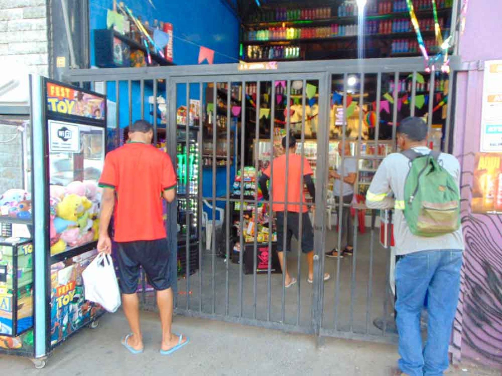 O comerciante entrega as bebidas por uma passagem na grade, onde um cartaz chama a atenção: “Pagamento antecipado”. Samuel explica que o aviso é mais uma estratégia para evitar que pessoas mal-intencionadas possam receber os produtos e sair sem fazer o pagamento.