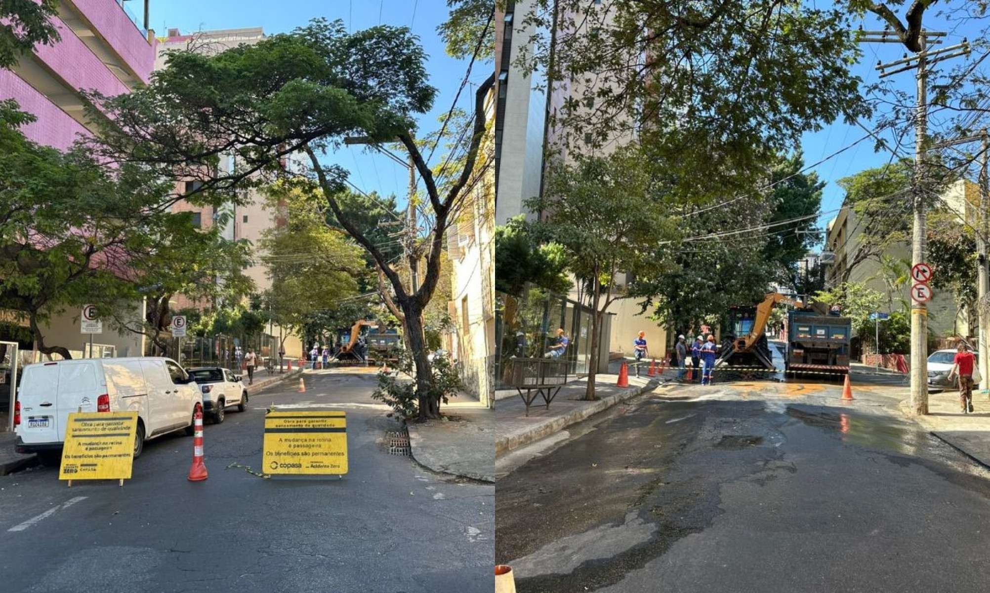 De acordo com a Copasa, a equipe atua para solucionar um vazamento. A previsão é de que a obra seja concluída até às 18h.