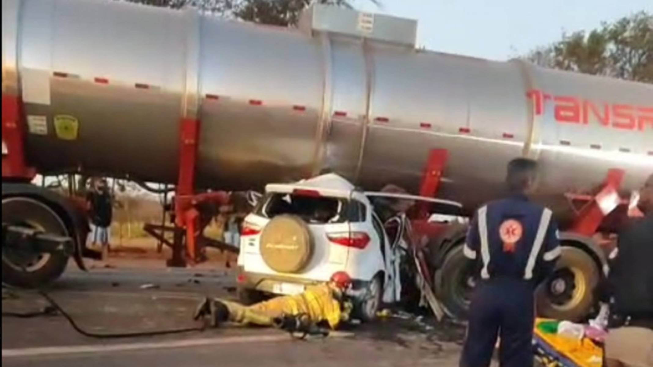 O Corpo de Bombeiros Militar de Minas Gerais (CBMMG) foi acionado às 5h por uma testemunha. No chamado, ela contou que um carro de modelo Ford Ecosport tentava atravessar a pista da rodovia quando colidiu contra o último compartimento de um caminhão-tanque.