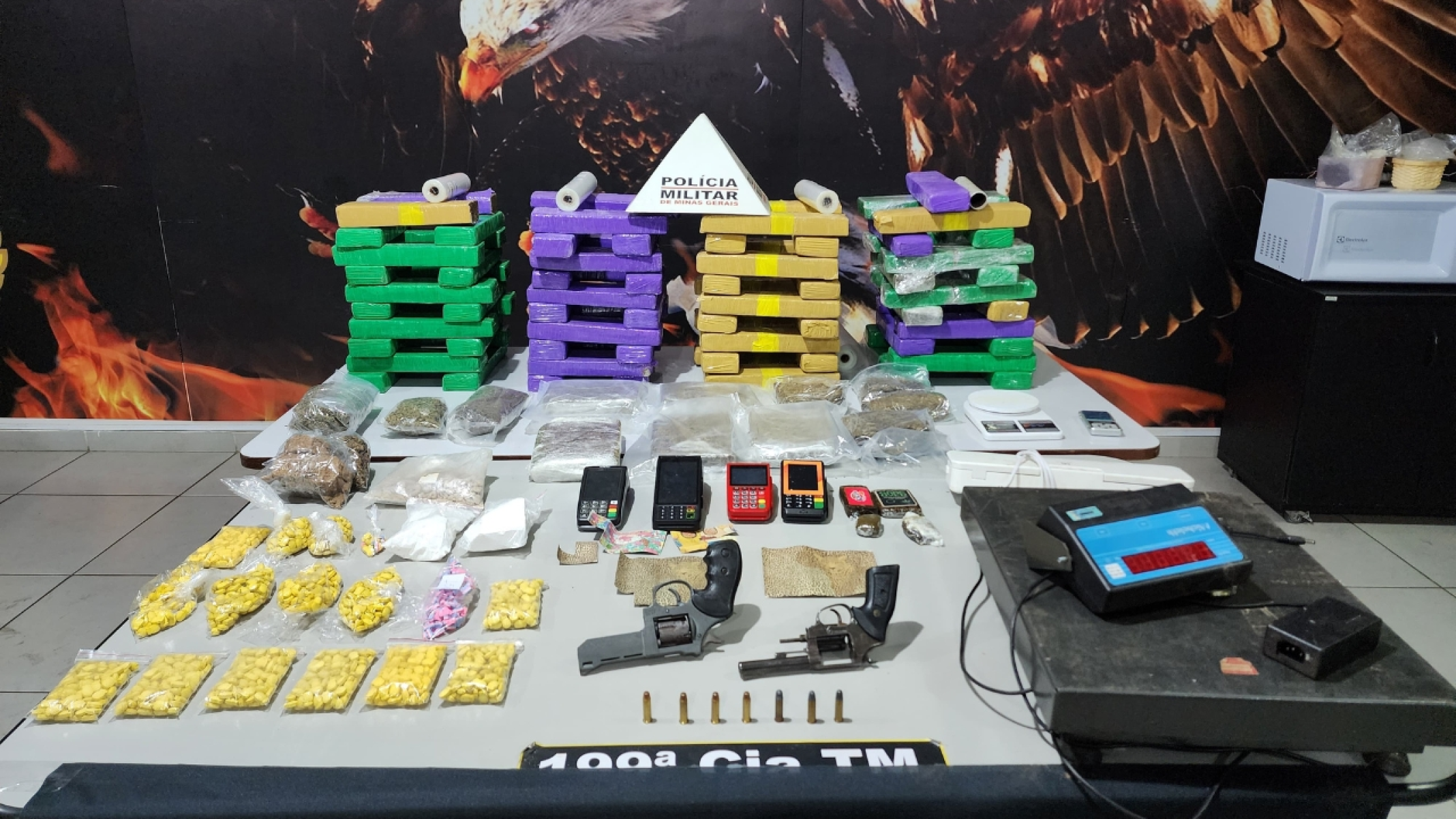 Também estavam na casa, segundo a PM, dois revólveres calibre 38, munições, balança de precisão, uma seladora, quatro maquininhas de cartão e um veículo que ter sido usado na venda dos entorpecentes.