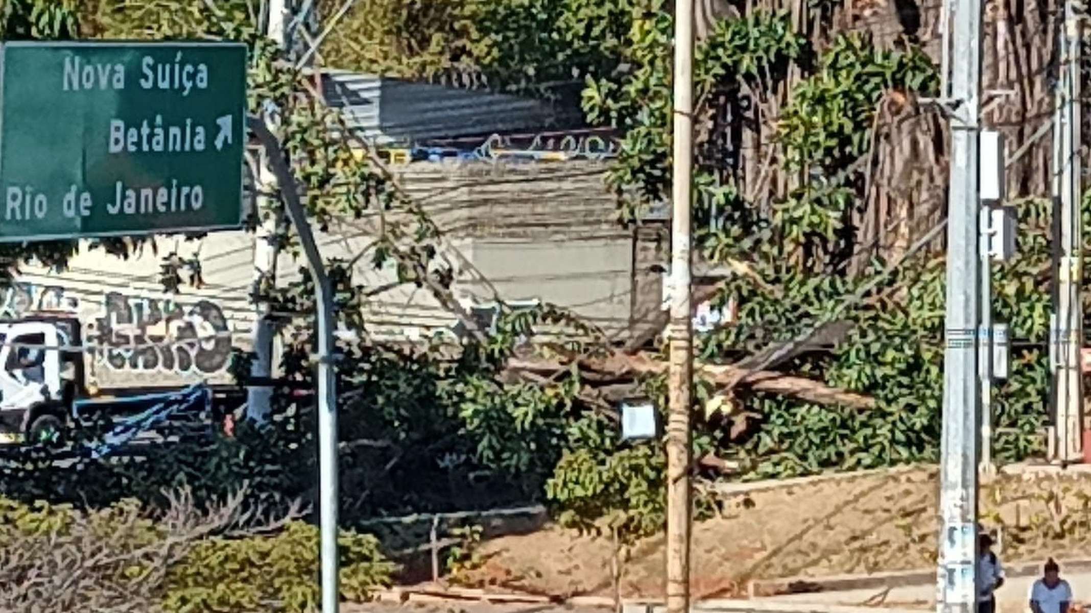Parte de uma árvore de grande porte caiu na Avenida Presidente JK, no Bairro Gameleira, Região Oeste de BH, nesta quinta-feira (31/7). A via foi fechada pela BHTrans, que implantou desvios. A queda também atingiu a rede elétrica, o que deixou cerca de 1.800 clientes do Bairro Coração Eucarístico sem energia, de acordo com a Companhia Energética de Minas Gerais (Cemig).