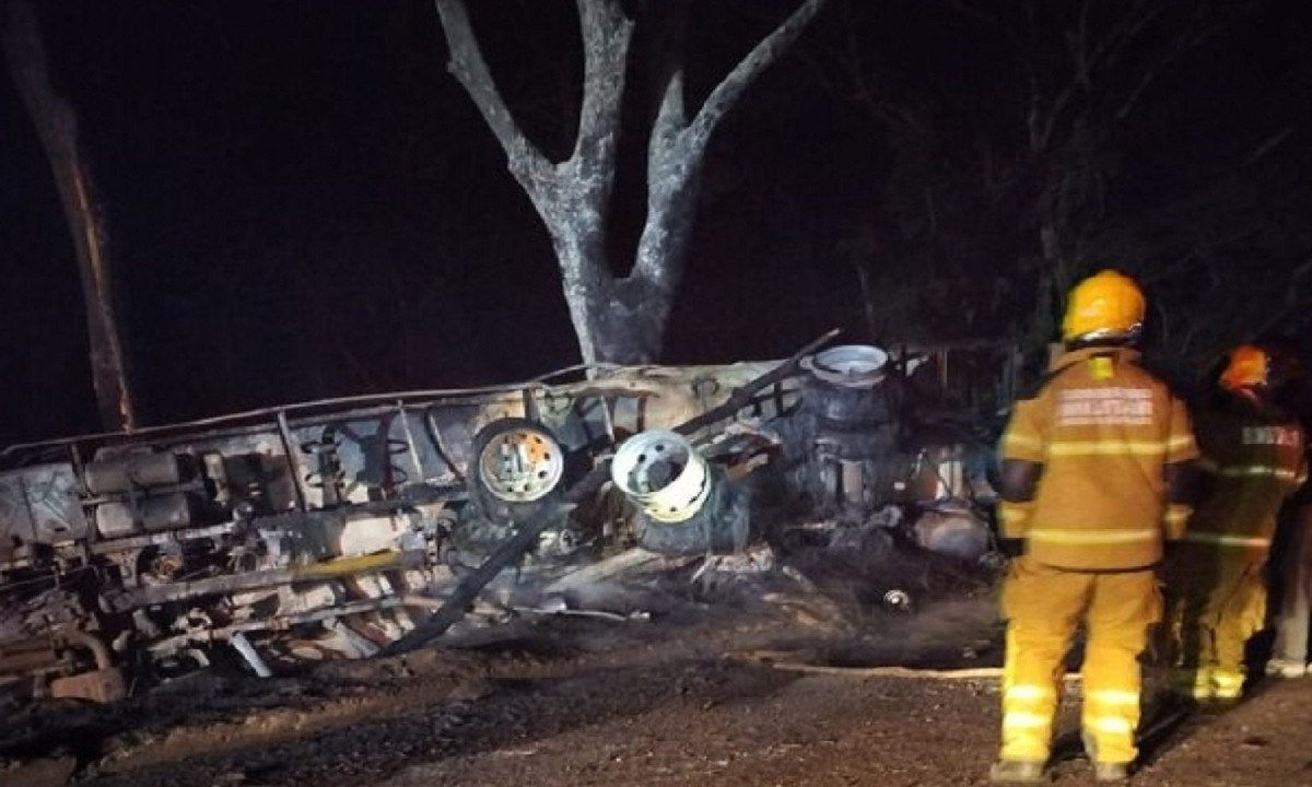 Segundo o Corpo de Bombeiros, o acidente ocorreu às 22h. Quando a viatura chegou ao local, o caminhão ainda pegava fogo, e o motorista estava preso às ferragens da cabine, já carbonizado.