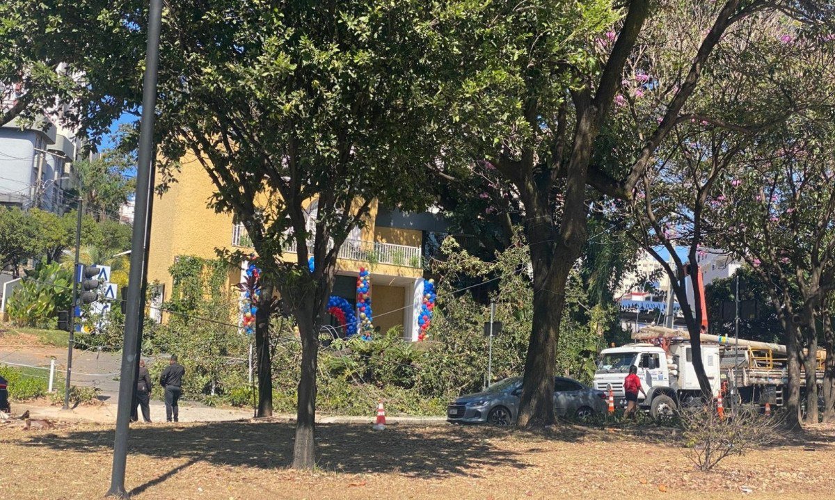 A Cemig foi acionada para a desenergização da rede elétrica e reparo, e a Prefeitura de Belo Horizonte atuou no isolamento da via e na remoção dos galhos após a supressão, na manhã deste domingo (3/8).