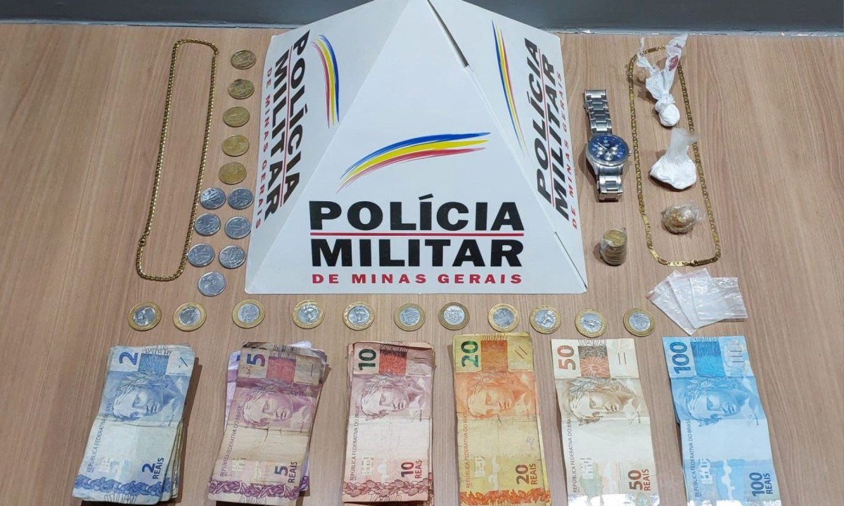 O homem foi abordado e, com ele, havia R$ 518,50 em espécie. Os militares seguiram ao banheiro e, lá, acharam uma pedra grande de crack, duas embalagens com porções de cocaína, dois cordões de material semelhante a ouro e um relógio.