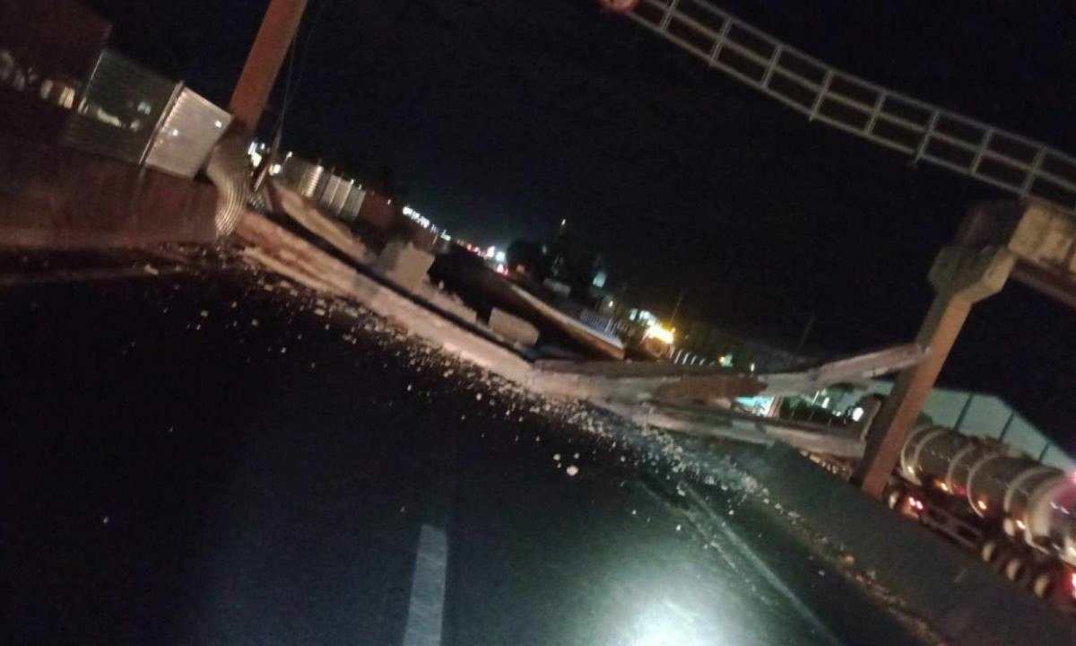 Passarela é derrubada por caminhão transportando maquinário na BR-153