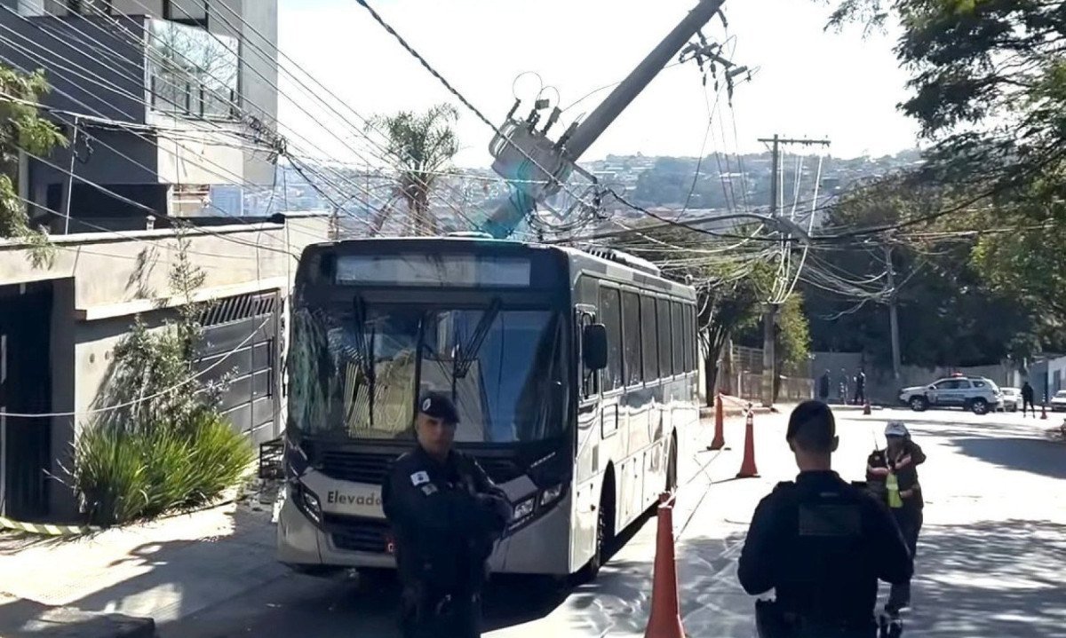 BH: ônibus bate em poste e causa risco de eletrocussão no Barreiro