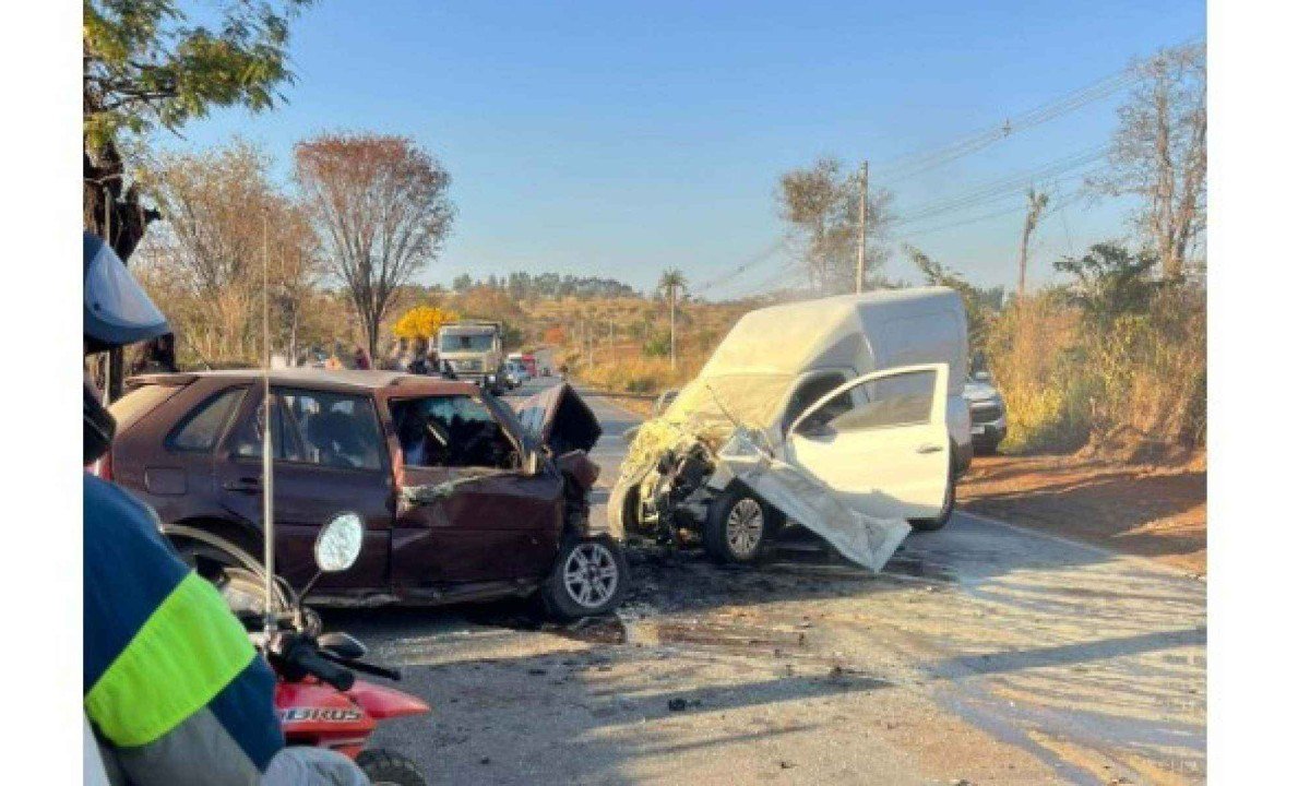 Acidente na estrada de Capim Branco, na Grande BH, teve princípio de incêndio controlado por populares; vítimas ficaram presa às ferragens