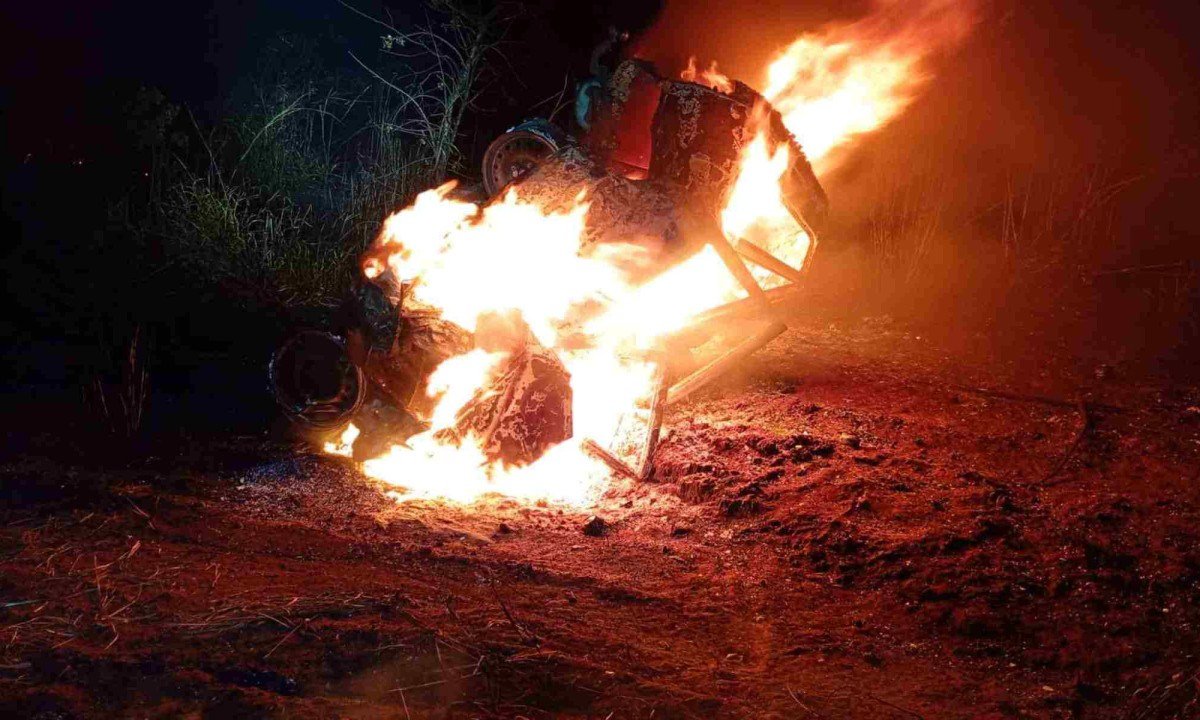 Segundo o Corpo de Bombeiros de Ituiutaba, o impacto ocorreu por volta das 19h. Após a batida, o carro de passeio pegou fogo e as chamas se espalharam pela vegetação às margens da rodovia. Três ocupantes, duas mulheres e a criança, foram arremessados para fora do veículo. outras duas pessoas ficaram presas às ferragens e tiveram os corpos carbonizados.