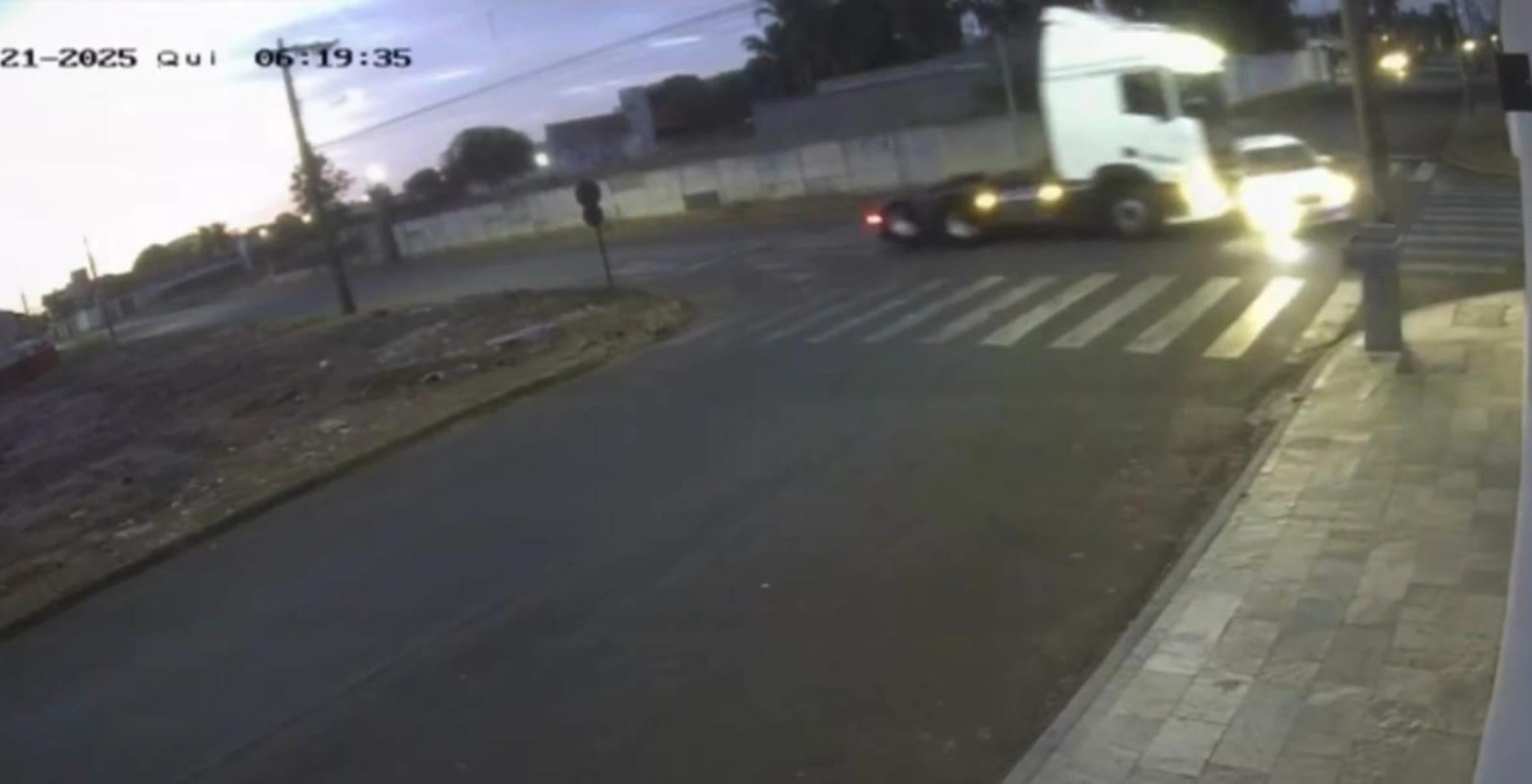 Carro é arrastado por caminhão que avançou placa de pare; veja o vídeo