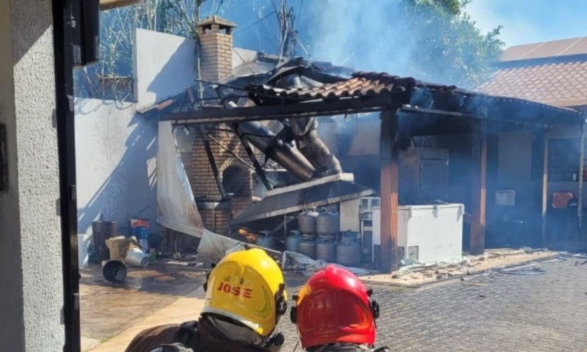 O incêndio teve início após a queda de um botijão de gás, que vazou e contribuiu para a propagação do fogo proveniente de uma chapa