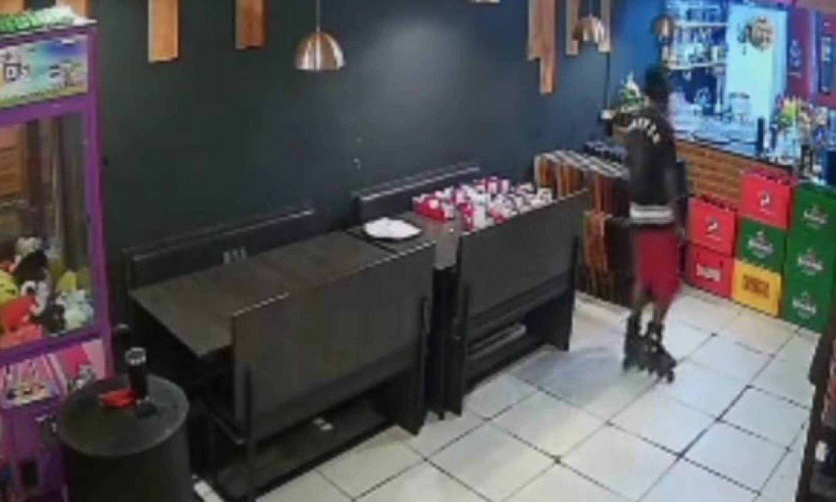 Vídeo: homem invade bar usando patins e furta celular em BH
