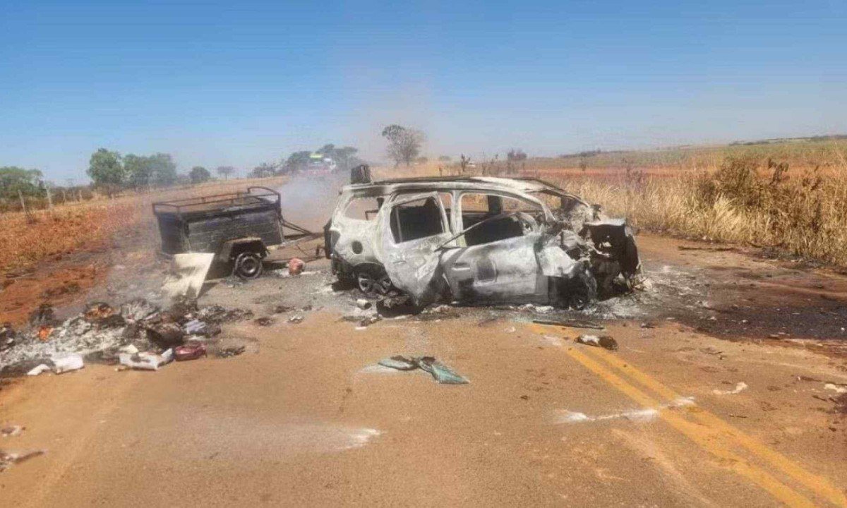 Motorista do automóvel, de 29 anos, morreu carbonizado depois de ficar preso às ferragens. Acidente aconteceu em Luz, no Centro-Oeste de Minas Gerais