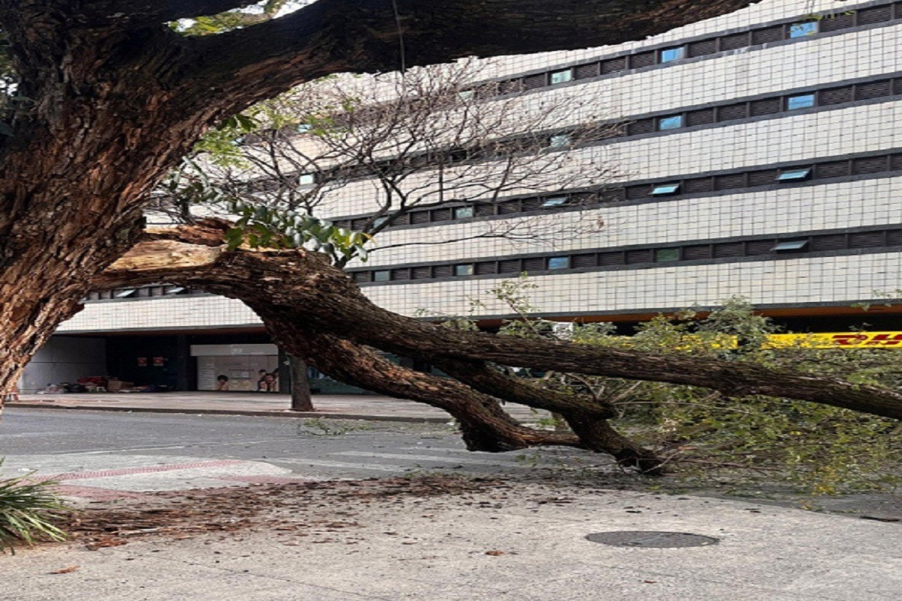 A queda parcial de uma árvore interdita a Rua Bernardo Guimarães, altura do número 868, no Bairro Funcionários, na manhã deste sábado (2/8), e mobiliza o Corpo de Bombeiros.