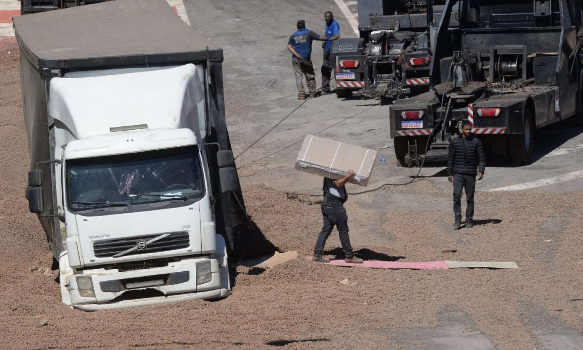 Por volta das 14h30, cinco guinchos tentavam puxar simultaneamente o caminhão, mas não foi suficiente — o material utilizado na área de escape dificulta a remoção dos veículos, já que seu principal objetivo é justamente conter aqueles que chegam ao local sem freios.