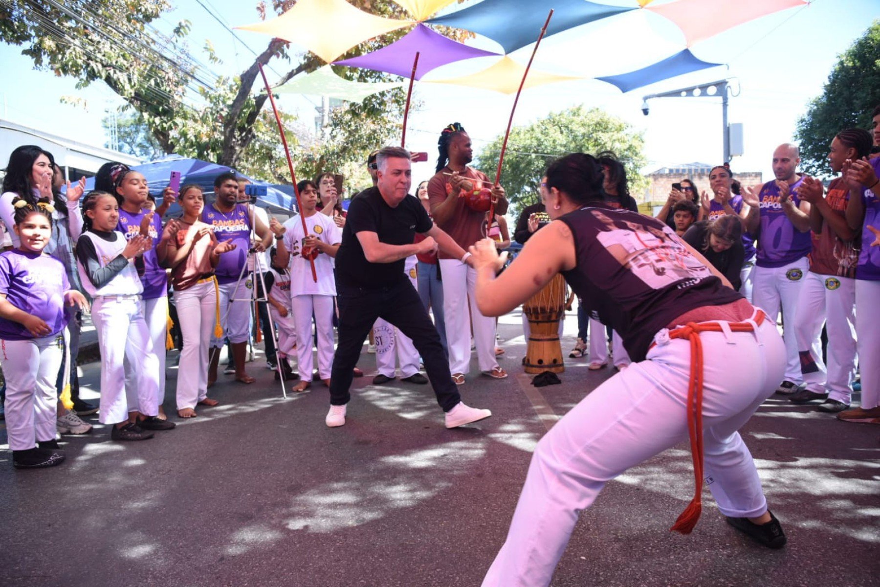 Entre os planos da prefeitura para o Barreiro, Álvaro Damião citou as conversas sobre a região industrial do Jatobá. "É preciso industrializar ainda mais, porque espaço para isso tem, e o Barreiro já abraçou essa ideia. O mesmo Barreiro das indústrias, da família, da história, é o Barreiro que vai receber uma universidade", revelou o prefeito, pontuando a intenção de que a região abrigue um centro universitário, uma conquista ainda durante a gestão de Fuad Noman. "O Barreiro ganhou isso porque é unido, elege mais vereadores e vereadoras porque é unido. O Barreiro sabe o que quer para ele. E a Prefeitura de Belo Horizonte agradece eternamente por ter o Barreiro conosco". O prefeito caminhou pelo evento, cumprimentou os moradores, cantou parabéns para o Barreiro, cortou o primeiro pedaço do bolo de 170 centímetros e até jogou capoeira.