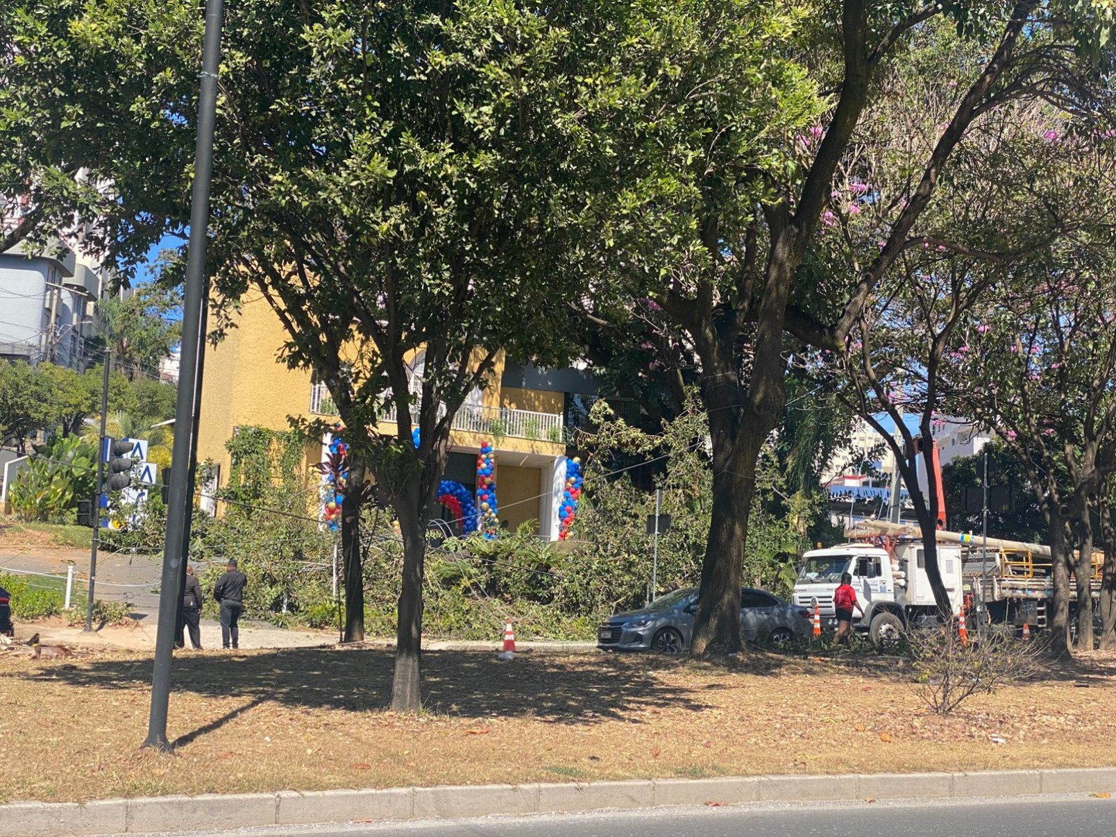 A Cemig foi acionada para a desenergização da rede elétrica e reparo, e a Prefeitura de Belo Horizonte atuou no isolamento da via e na remoção dos galhos após a supressão, na manhã deste domingo (3/8).