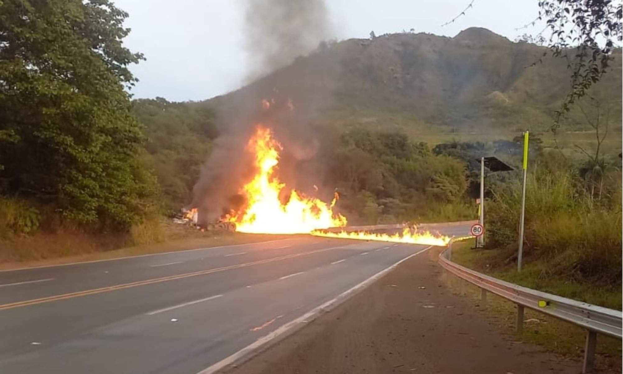 O Corpo de Bombeiros Militar de Minas Gerais (CBMMG) foi acionado e iniciou o combate ao fogo às 7h37 diante do risco elevado de explosão e da natureza da carga. Três equipes do CBMMG atuam no local.