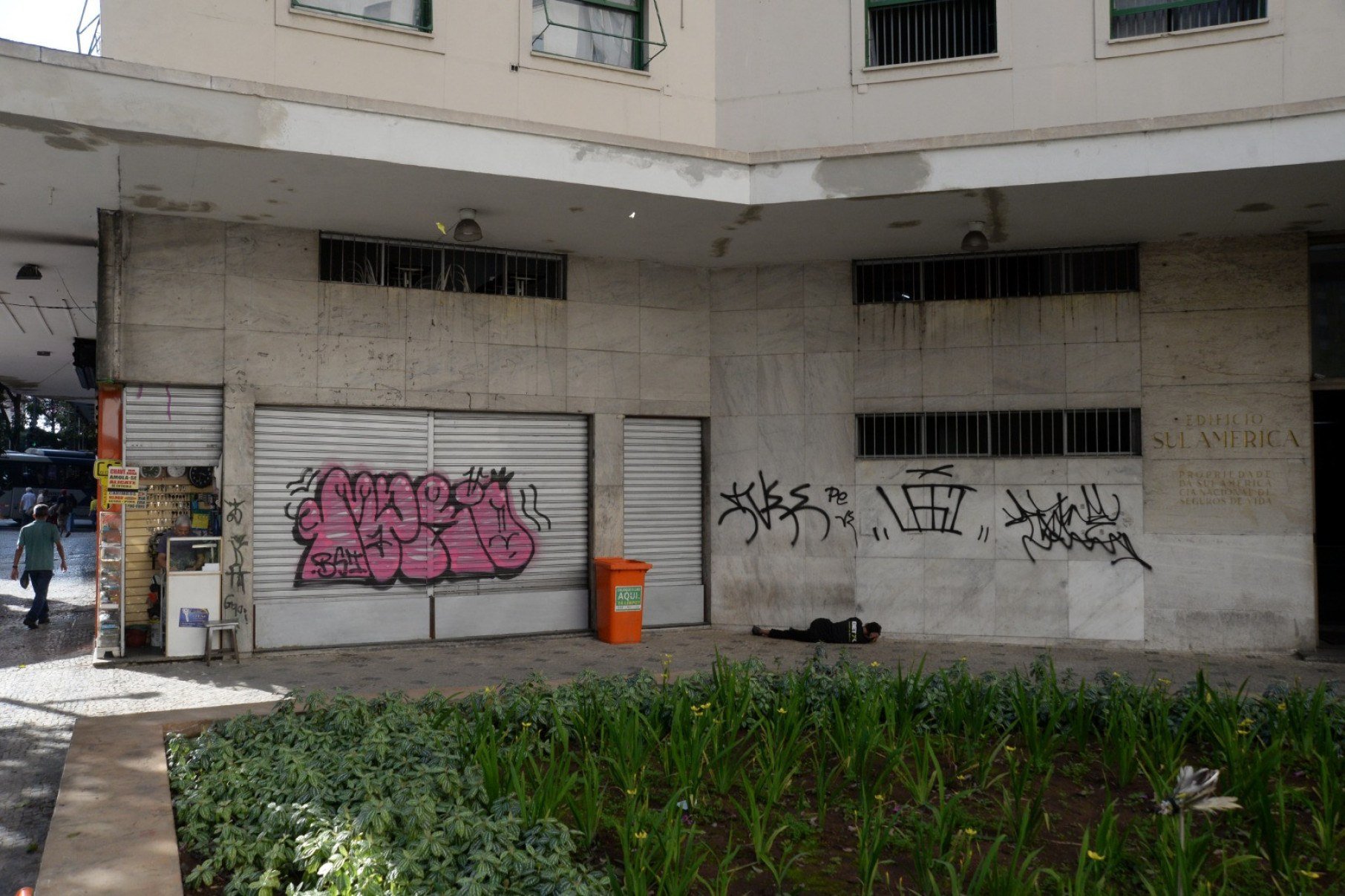 A poucos dias de completar seis meses de sua reinauguração, a Praça Fuad Noman, antiga Praça da Independência, localizada entre os edifícios Sulacap e Sulamérica, na Avenida Afonso Pena, foi pichada. As portas das lojas que cercam o espaço de lazer, onde antes ficava o anexo do Conjunto Sulacap-Sulamérica, foram tomadas por grafias em tinta preta e rosa.