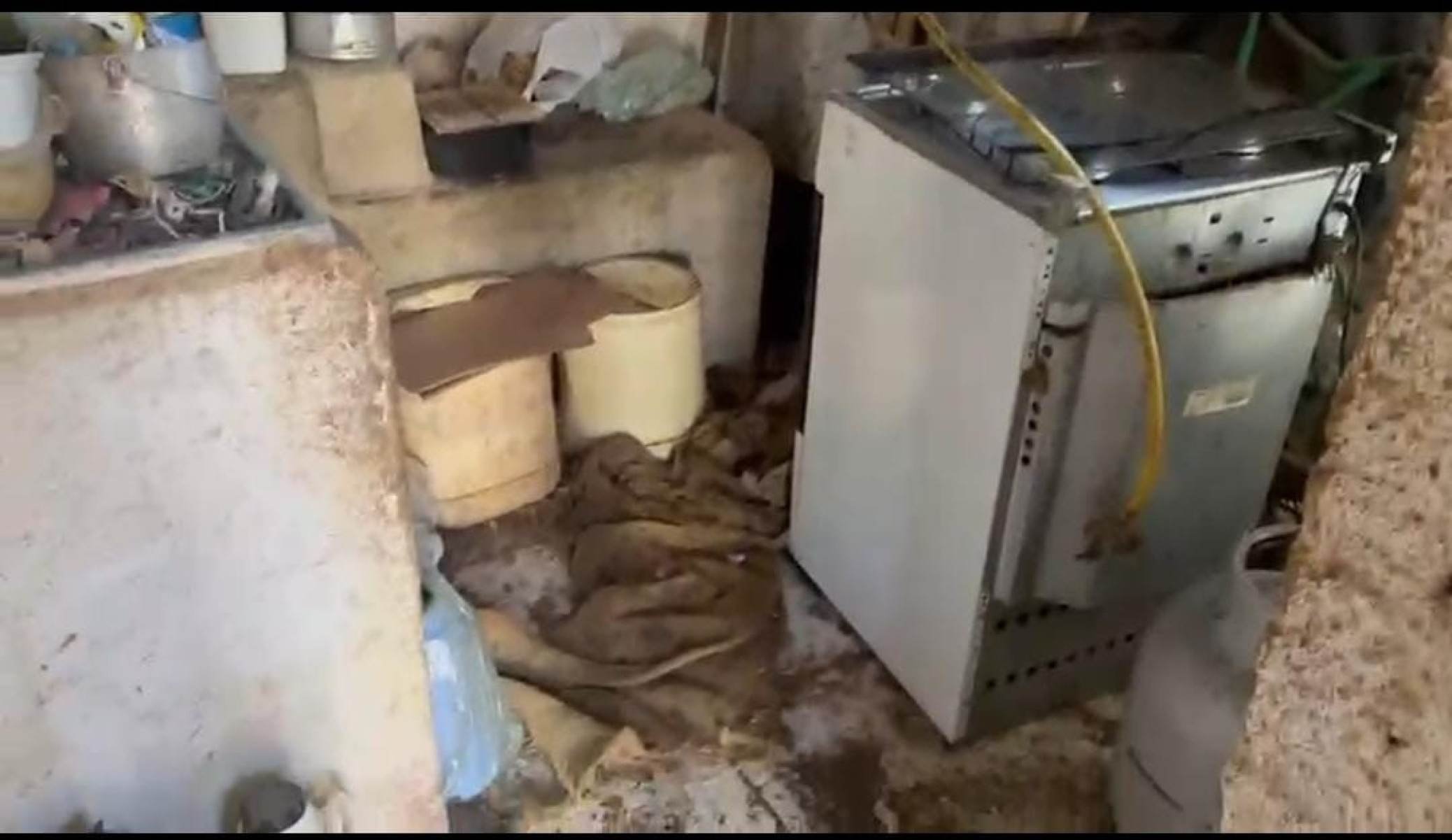 Rachaduras, manchas nas paredes, chão irregular e entulhos mostram as condições às quais o idoso foi submetido. Em um dos cantos, uma espécie de lona substitui uma parede. O vídeo mostra o banheiro minúsculo, cuja área do vaso sanitário é dividida com o chuveiro, com marcas de sujeira e outras manchas.