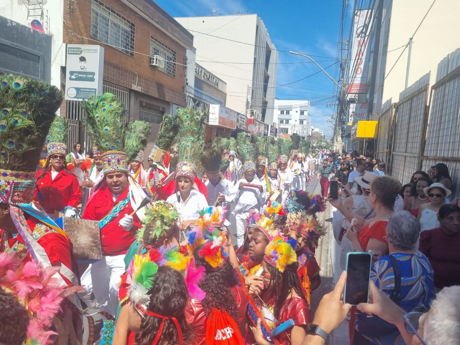 Com a mistura de ritmos, animação e colorido de suas roupas e fitas, os catopês (roupas brancas e vermelhas), marujos (vestimentas azuis e vermelhas) e caboclinhos (no tom vermelho) receberam os aplausos dos moradores e visitantes, que aproveitaram a beleza das manifestações folclóricas para vídeos, fotos e selfies.