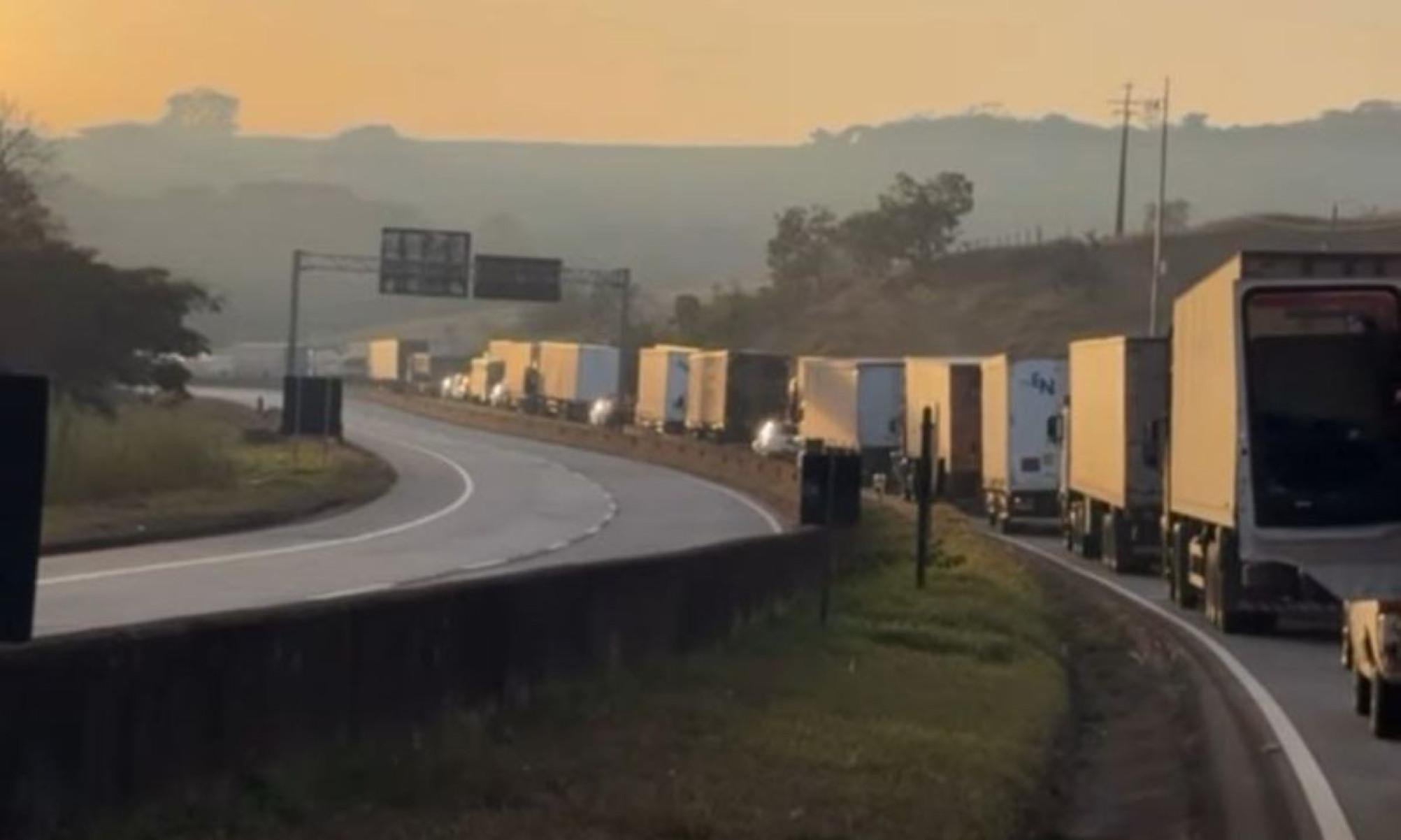 As faixas da direita e do acostamento, no sentido Belo Horizonte, estão interditadas. O fluxo segue pela faixa da esquerda e, às 9h, o congestionamento chegava a 12 quilômetros.