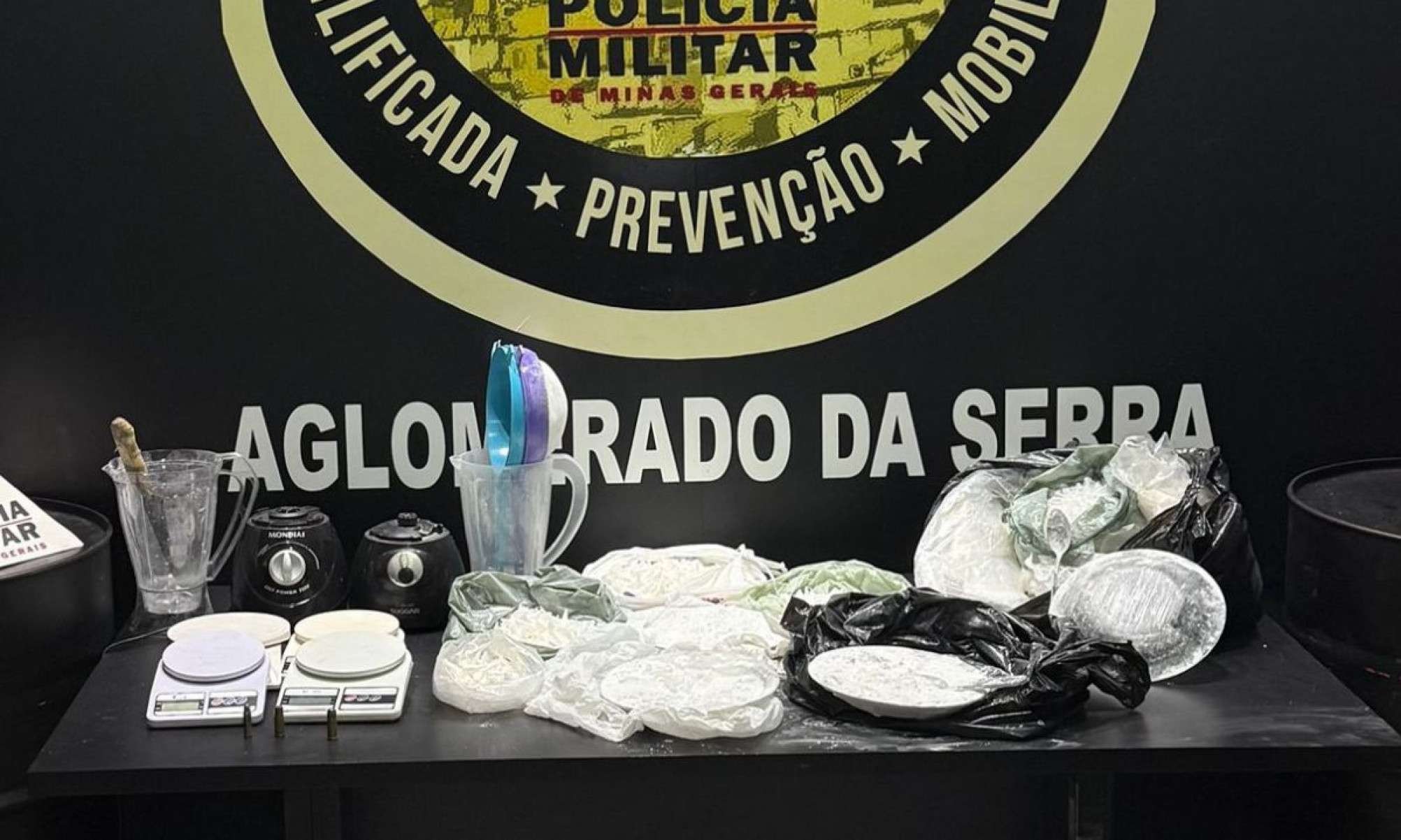 O suspeito acompanhou os agentes ao cômodo e os militares constataram que era um depósito para o tráfico. Segundo o boletim policial, foram recolhidos 1216 papelotes e uma porção de cocaína em sacos, quatro balanças de precisão, dois liquidificadores, e três munições, sendo duas de calibre .44 e outra .38.