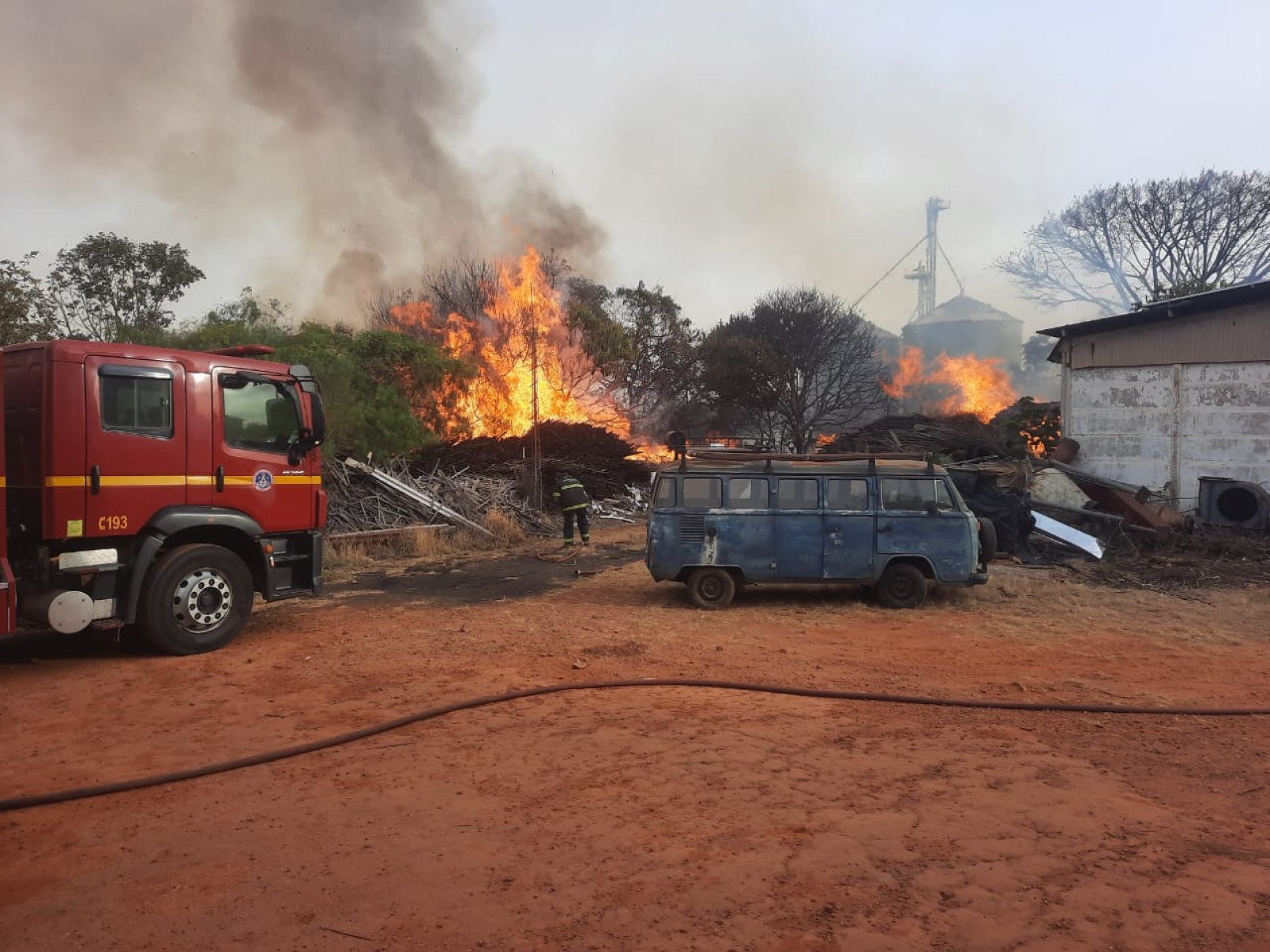 Um incêndio em vegetação atingiu um galpão industrial de uma fábrica de paletes no Distrito Industrial de Araxá, no Triângulo Mineiro, na manhã desse sábado (23/8).