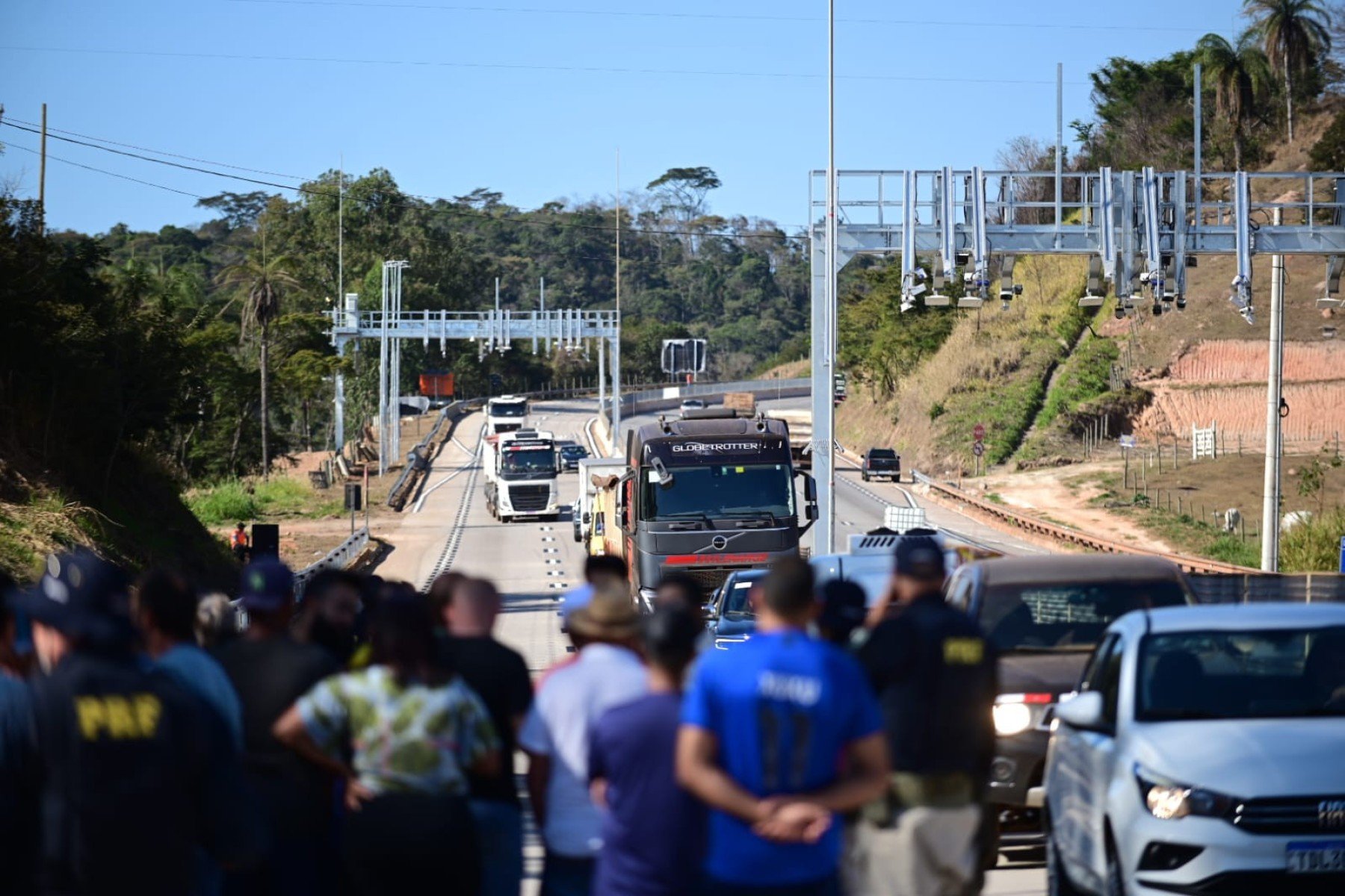 Manifestantes ocuparam uma faixa da BR-381, na altura do Km 412, em Caeté, na Região Metropolitana de BH, para protestar contra a instalação de um pedágio no local. As pessoas presentes ao ato afirmam que o pórtico sem cancela – modelo Free Flow – foi instalado em um ponto que prejudica moradores de Nova União e região, também na Grande BH, no acesso à capital mineira, já que implica gasto na ida e na volta.