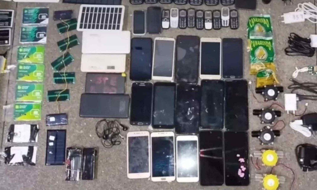 No total, eram 35 celulares, 28 placas de carregadores solares, 17 baterias de celulares, 13 isqueiros, 12 chips, quatro carregadores portáteis, nove cabos USB, dois carregadores de carro, cinco carregadores hidráulicos e três pacotes de fumo.