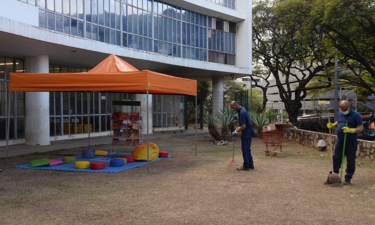 "A Secretaria de Estado de Cultura e Turismo de Minas Gerais informa que a Biblioteca Pública Estadual de Minas Gerais ampliou suas atividades para crianças e famílias com a inauguração de um novo espaço nos jardins da instituição, uma extensão da Brinquedoteca do Setor Infantojuvenil (Biju). O ambiente, equipado com tenda, puffs, livros e brinquedos, funcionará de segunda a sexta-feira, das 9h às 11h e das 14h às 16h", diz a nota.