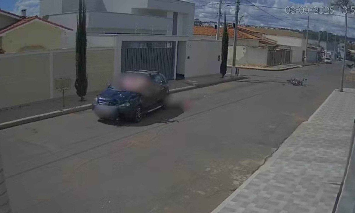 Câmeras de segurança gravaram o momento do acidente, que aconteceu em Patos de Minas (MG), na Região do Alto Paranaíba