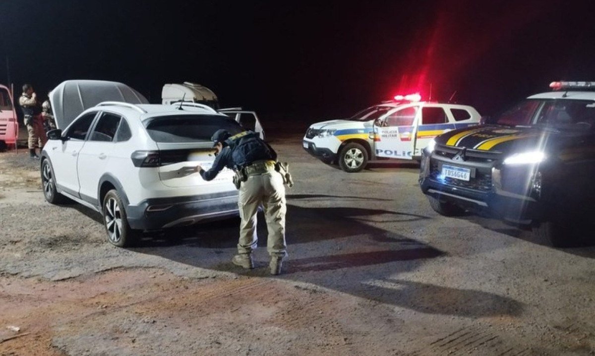 Automóvel foi interceptado em Salinas (MG), no Norte do estado, durante ação de combate ao crime. PRF e Polícia Militar atuaram na ocorrência