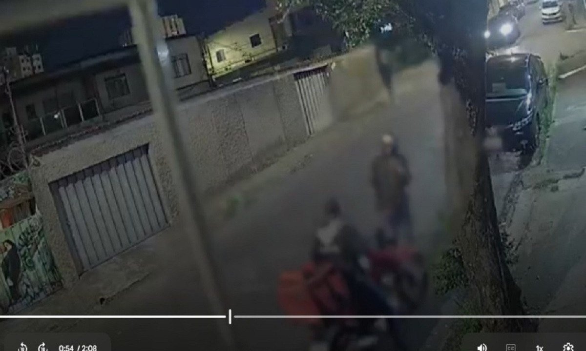 Um vídeo mostra que ao render a vítima, o criminoso se afasta da motocicleta. É quando surge o segundo suspeito, que verifica a moto para pilotá-la.