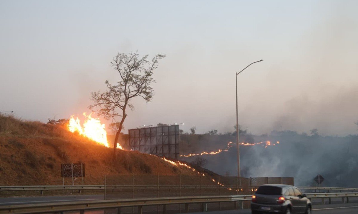 Mesmo com as chamas, voos do dia seguem operando normalmente. Rodovia LMG 800 tem muita fumaça na pista