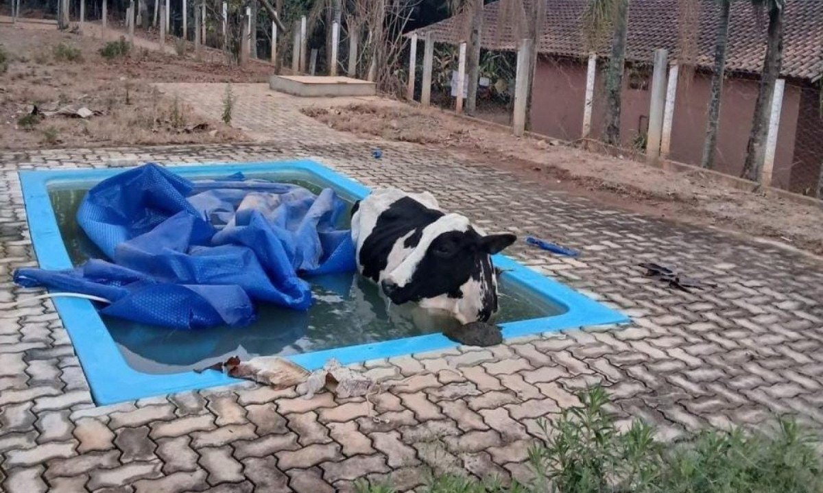 Vídeo: Vaca cai em piscina de propriedade rural no Sul de Minas