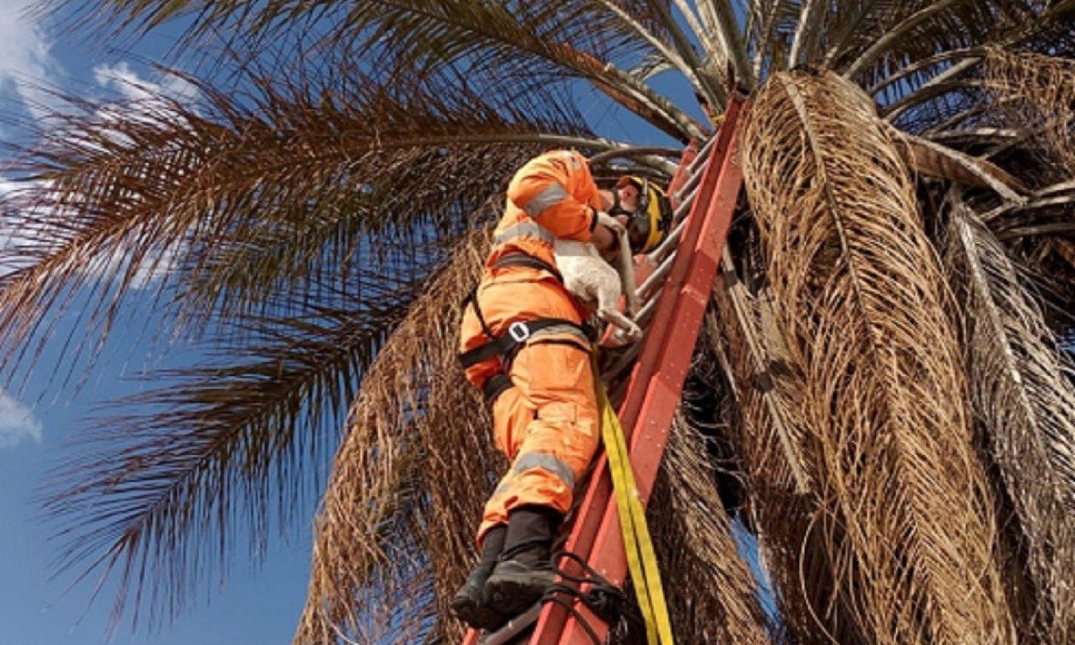 Bombeiros resgatam "Pipoquinha" no alto de um coqueiro