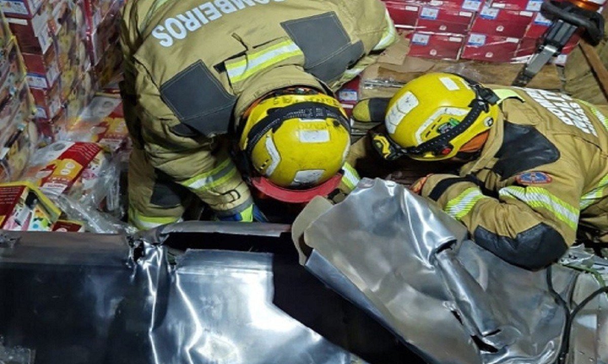 Para a retirada do corpo, os bombeiros tiveram de recortar o baú onde estava a carga de eletrodomésticos