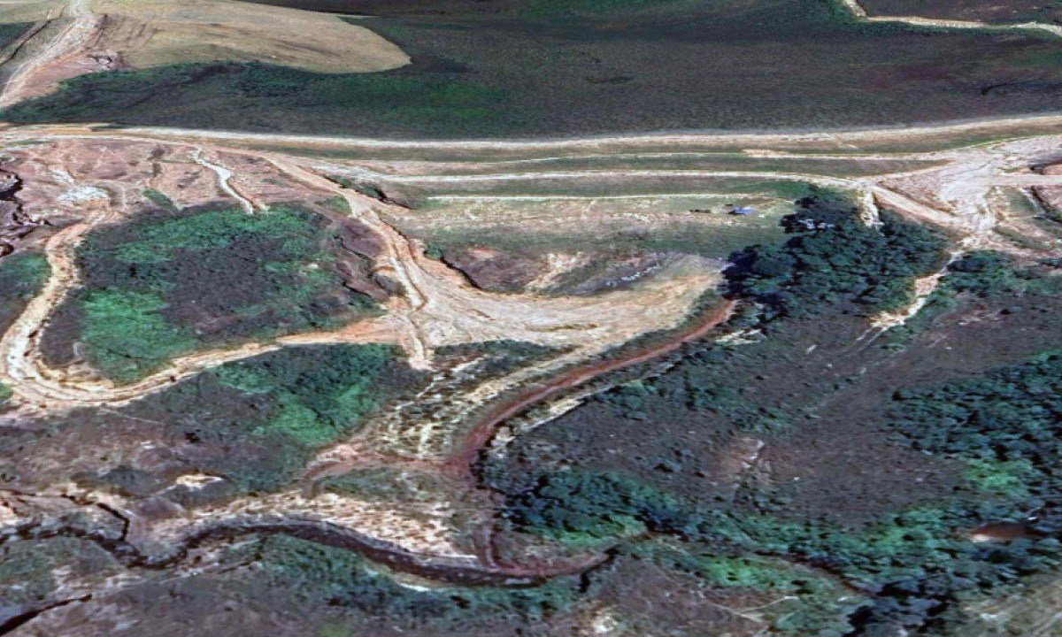 Imagem de satélite mostra a Barragem Água Fria, da Topázio Mineração, estruttura em risco que teria de ser contornada crédito: Reprodução/Google Earth