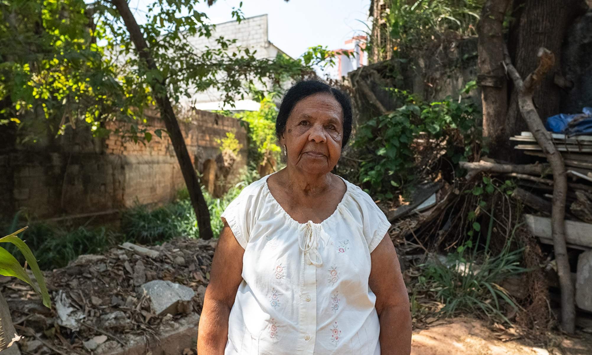 A matriarca da família, Maria Vicentina Pereira, de 83 anos, tem na lembrança um misto de sentimentos ao falar do córrego que passa nos fundos do lote. Quando era adolescente, o curso d’água, ainda limpo, era fonte de peixes para a alimentação dos entes queridos. O tempo passou, e a ocupação do bairro junto ao despreparo das autoridades transformaram o manancial num esgoto a céu aberto. “Quando chove, eu fico em pé ali esperando pra ver se vai encher. É uma correria danada. Já fiquei aqui de madrugada espiando”, diz.