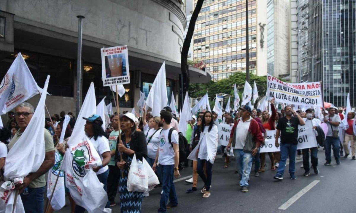 Após a reunião, cerca de 700 atingidos das cinco regiões da Bacia do Paraopeba caminharam pelo centro da capital mineira. A Marcha dos Atingidos começou na sede do Instituto Nacional de Colonização e Reforma Agrária (Incra), na Avenida Afonso Pena, passou pela Praça Sete e foi finalizada na Praça da Estação.