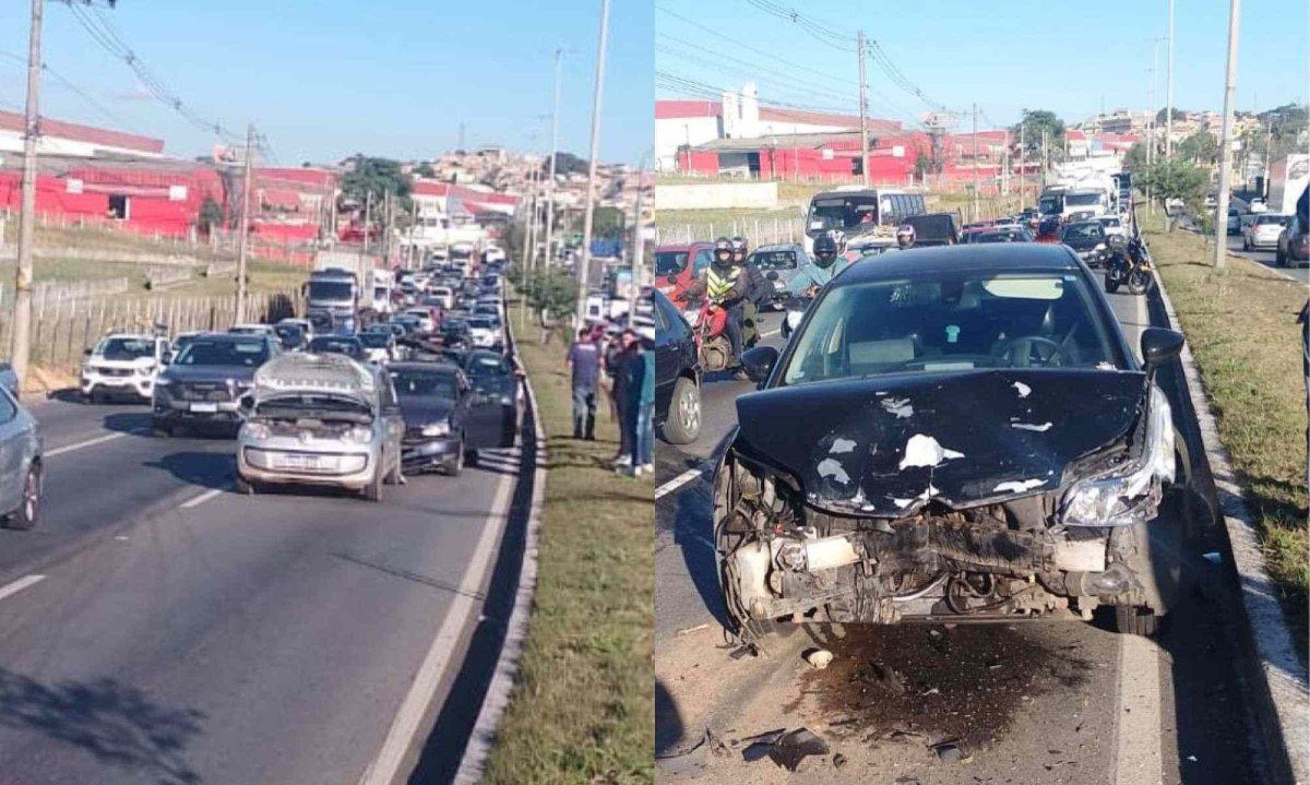 Acidente entre três carros complica trânsito da Via Expressa de Contagem