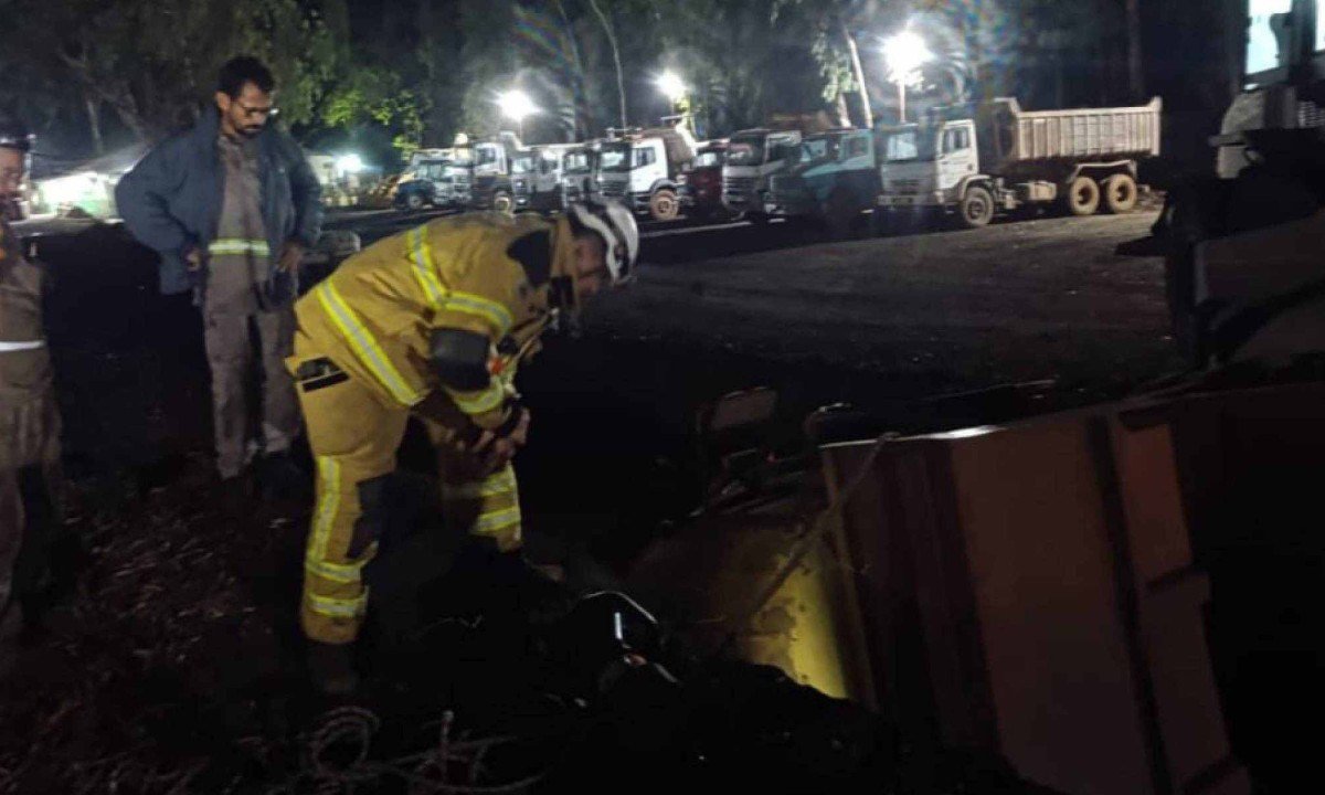 O condutor do veículo de carga foi ejetado e ficou com membros presos sob a cabine, em área de difícil acesso e instável na área industrial de Sete Lagoas